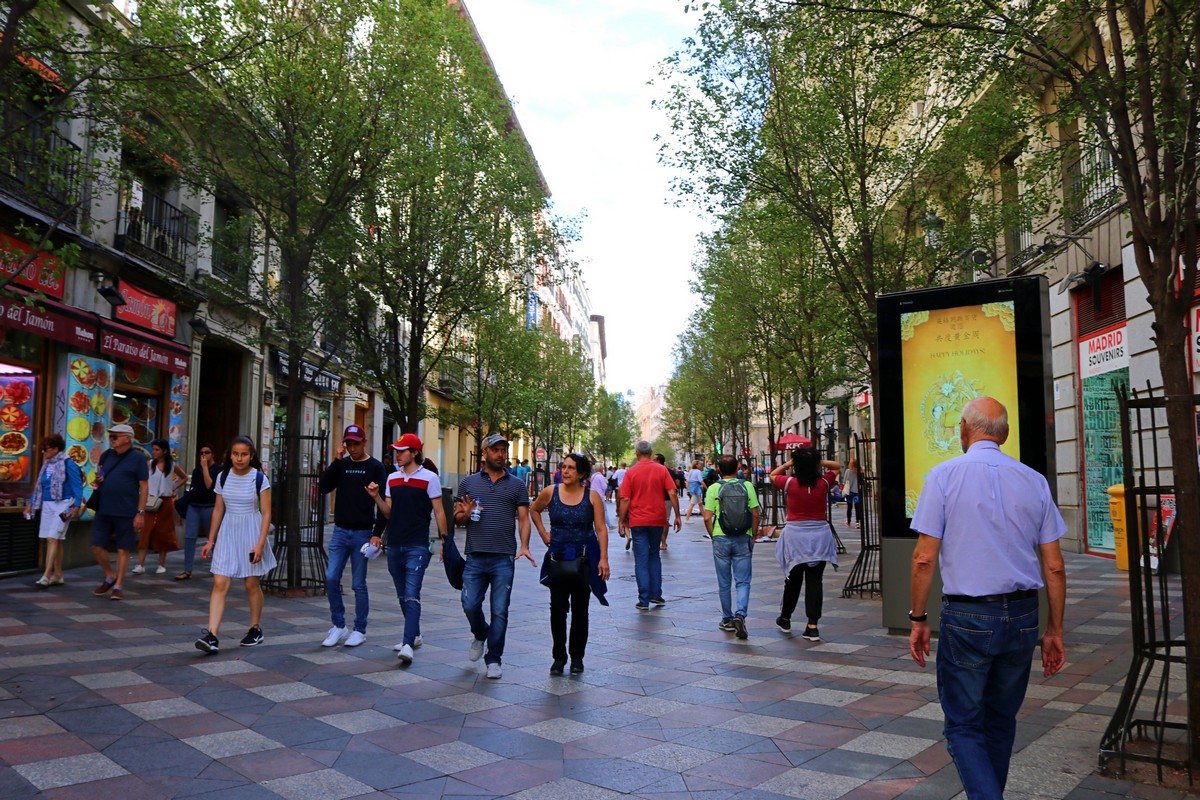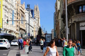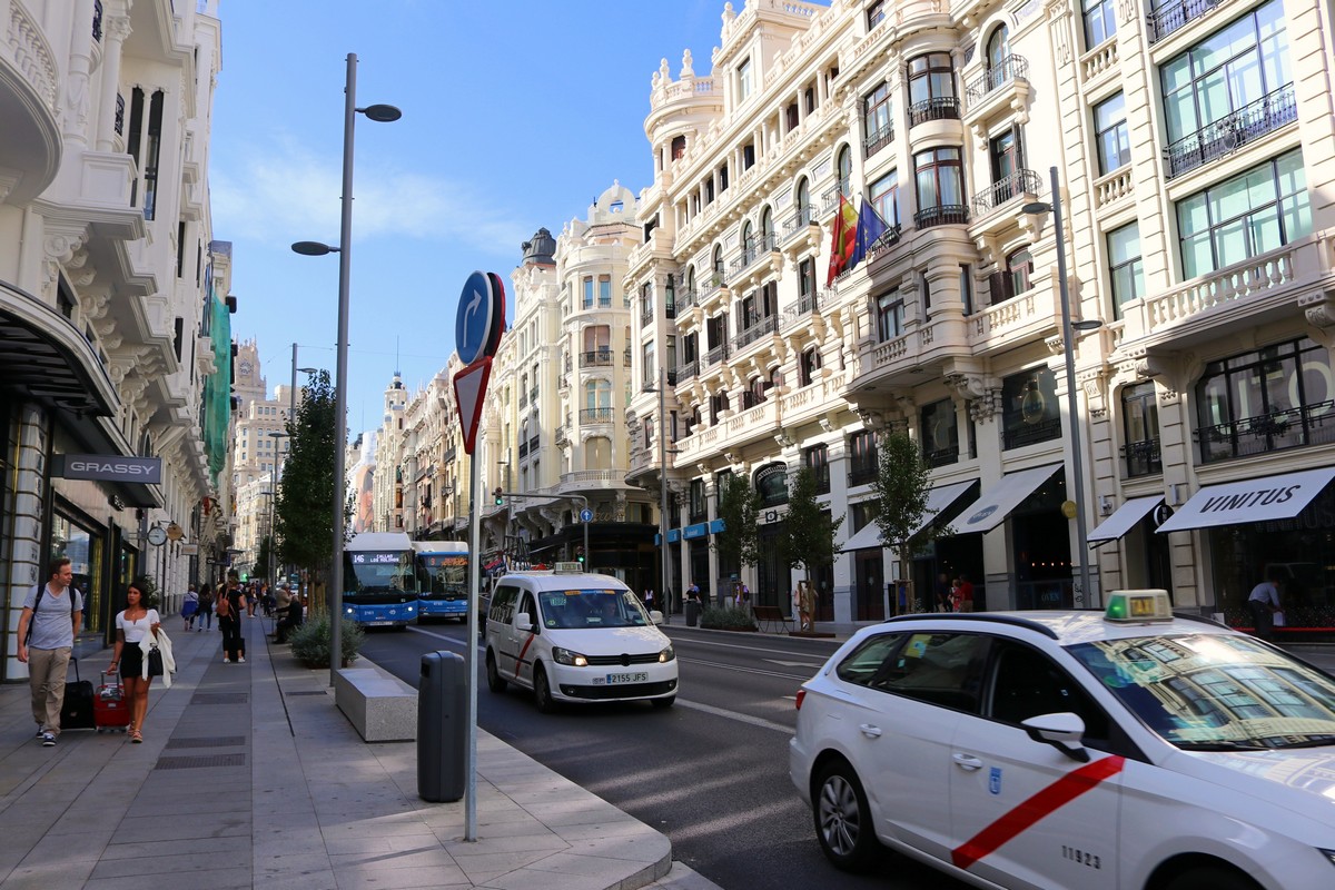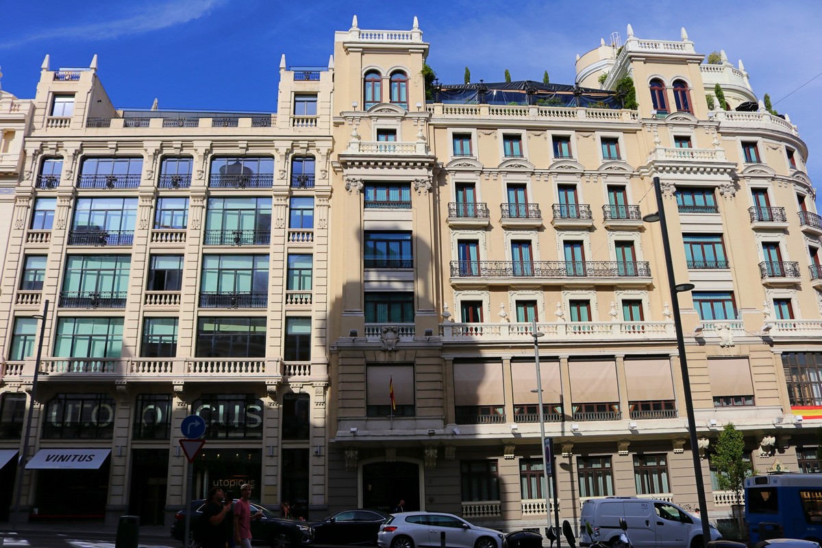 Gran Via, o adevărată expoziție de arhitectură din secolul XX, este o stradă plină de viață și una dintre cele mai importante zone de shopping din Madrid. De asemenea, aici se regăsesc o mulțime de hoteluri și cinematografe, dar si magazine numeroase și teatre ce au transformat-o într-un Broadway spaniol. La capitolul siguranță e mai ok decât în Barcelona, Gran Via e mult mai pașnică decât Rambla din Barcelona, mai puțină politie, fără hoți vizibili ca acolo.